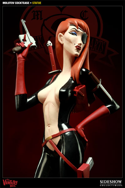 Joining Sideshow’s Venture Bros. collectible line, the Molotov Cocktease Statue depicts the mercenary maven in outstanding detail. Crafted in 1:5 scale, each piece is individually painted and finished, each with its own unique quality and detail that is the trademark of a handcrafted Sideshow Collectibles product. Capturing every curve of the Russian beauty, the Molotov Cocktease Statue is an outstanding addition to any display, the perfect addition to your Venture Bros. collection.