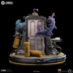 Ready to break the record of the biggest amount of scream energy collected, the monsters James P. “Sulley” Sullivan and his partner Mike Wazowski, pose happily next to their complex system of scream extractor machines, in front of a interdimensional closet door that leads to the bedroom of the sweet and cute Mary Gibbs, better known as Boo, a curious and innocent 2-years-old human girl that doesn’t appear to be afraid of the duo and with whom she created strong emotional bonds. With Boo next to them disguised with a homemade monster costume, and their treacherous rival Randall Boggs behind, Iron Studios present the diorama statue “Monsters Inc Diorama – Disney Classics 100 Years – Deluxe Art Scale 1/10”, with the trio of main protagonists and their greatest enemy, from another memorable and praised animated feature film by Disney Pixar Animation Studios. Another big box-office success adding to the line of statues celebrating the 100th anniversary of Disney by Iron Studios.