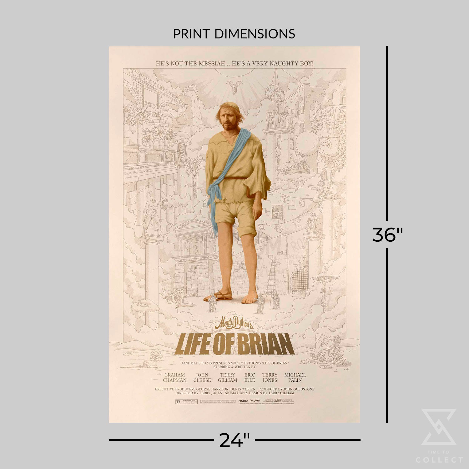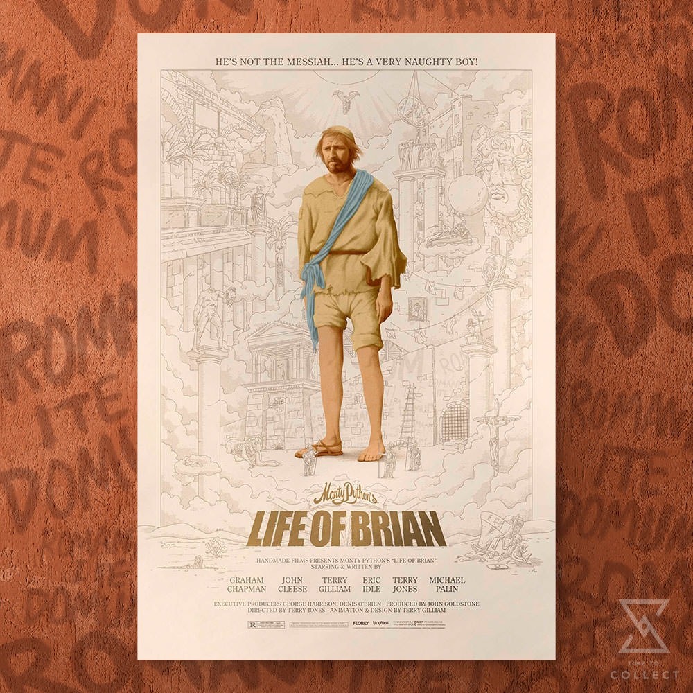 Continuing their celebration of Monty Python’s legendary films, Vice Press is thrilled to release this officially licensed fine art movie poster for Monty Python’s The Life of Brian. With plenty of fun easter eggs from the film, each release in Vice Press’ series has been fully approved and overseen by Terry Gilliam. This fine art lithograph is printed on vibrant mirri foil paper and hand-numbered as part of a limited edition of only 150 pieces, making it the perfect new addition to your collection of Monty Python artwork.
