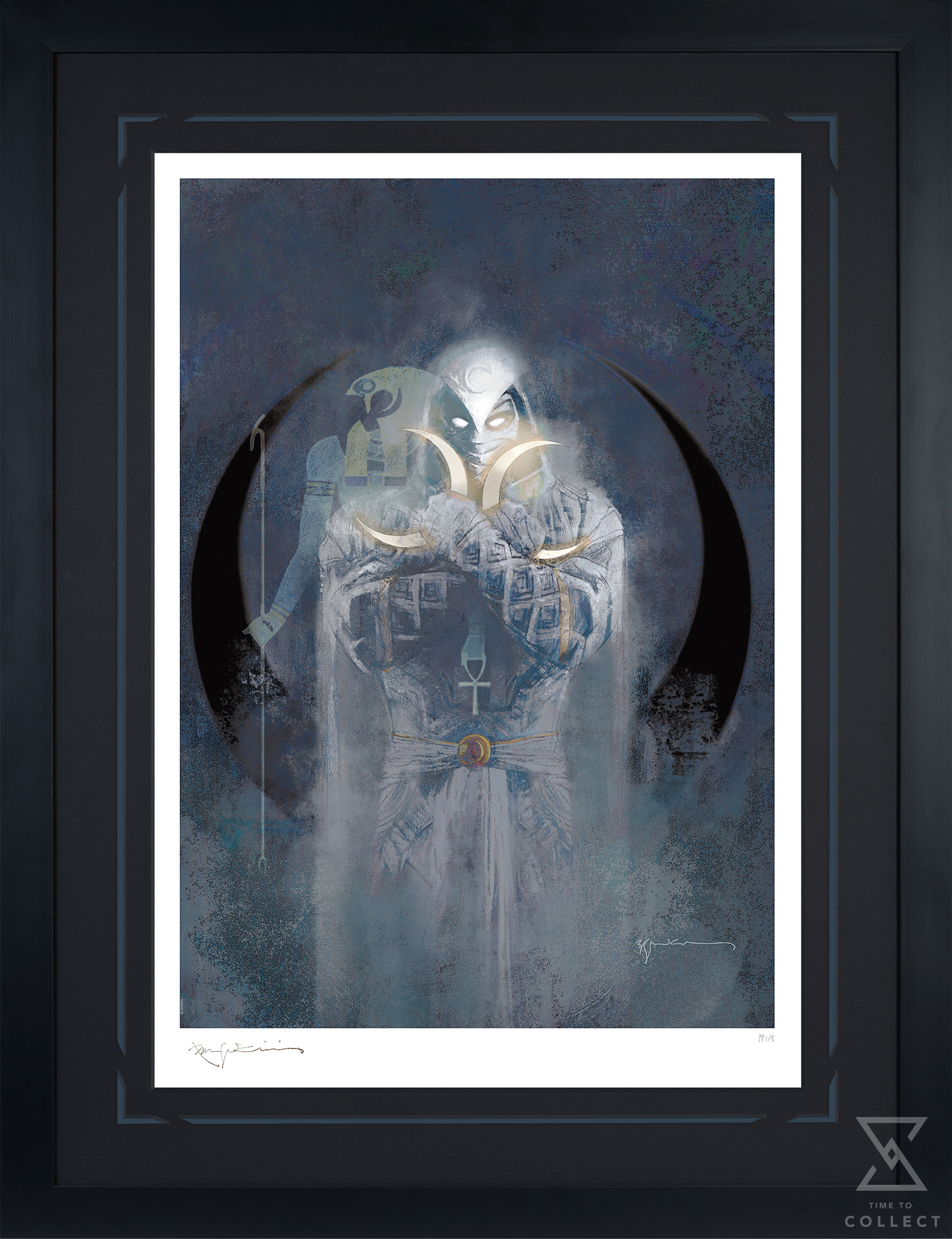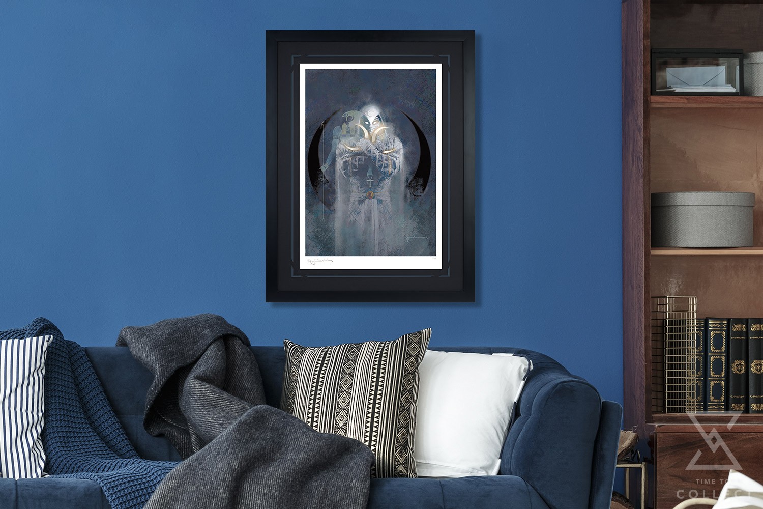 Originally created as a cover for the movie magazine Empire, this portrait of a celestial super hero is now available for fans in a fine art collectible format. Each Moon Knight: Vigilante Fine Art Lithograph is hand-signed by Sienkiewicz and includes a Certificate of Authenticity as a part of the limited edition of only 100 pieces. Available as an unframed certified archival lithograph print or in a custom framed presentation, this Moon Knight wall art is a must-have for Marvel collectors!