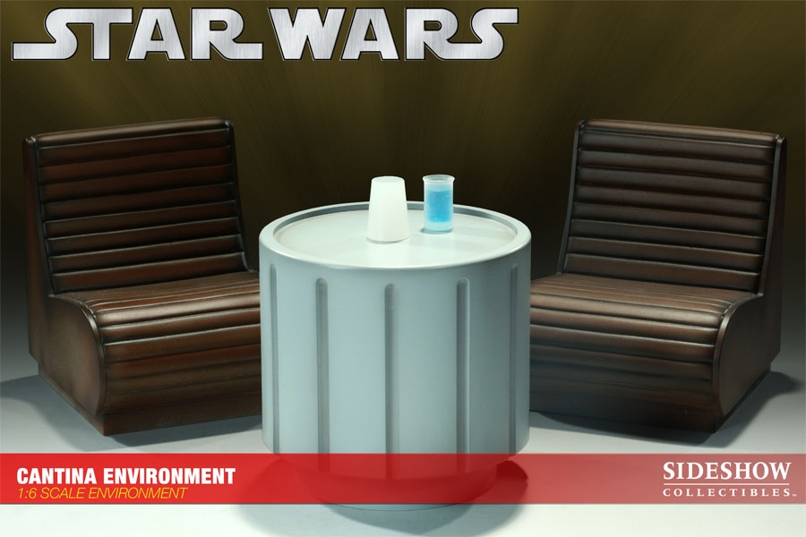 The Mos Eisley Cantina Environment features the scene of the blaster duel as Greedo tracks down the rogue Han Solo, the very table where the two negotiated Han’s debt. Featuring an LED light-up element and a refreshing beverage accessory to quench the desert thirst, The Mos Eisley Cantina Environment is an outstanding addition to any collection, an iconic scene perfect for any display.