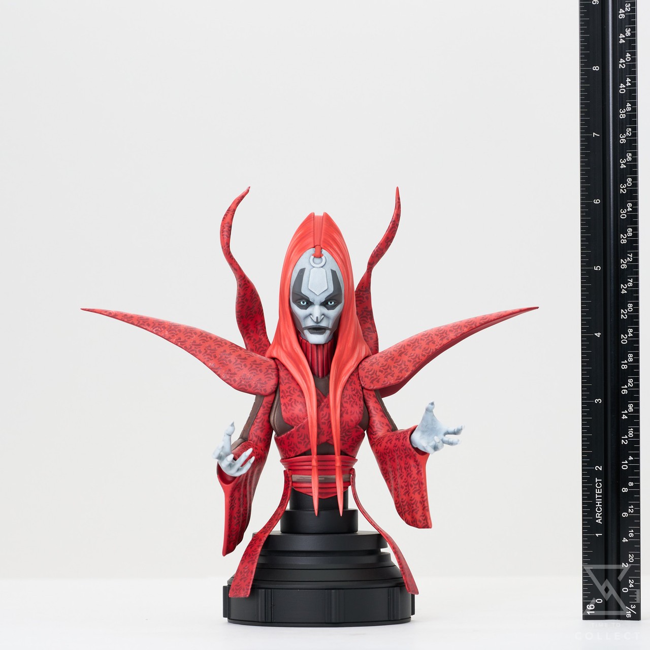A Gentle Giant LTD release! A key figure in the Clone Wars, Mother Talzin led the Nightsister,s a Dathomirian cult of witches, and was the mother of both Darth Maul and Savage Opress. Her plots to kill Count Dooku made her a force to be reckoned with, and this bust celebrates her fearsome focus! This approximately 6-inch, 1/7 scale mini-bust is based on her appearance in the Clone Wars animated series, and features detailed sculpting and paint applications. It comes packaged in a full-color window box with a numbered certificate of authenticity. Limited to only 2,000 pieces.