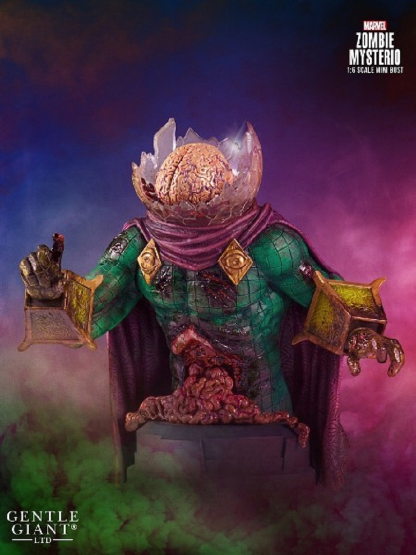 Several characters have donned the Mysterio costume to plague Spider-Man in the character’s long history. None, however, have been as grotesque as the Mysterio that appeared in the Marvel Zombies Universe! In the Marvel Zombies series, the world has been infected by a virus that turns the living, into rotting corpses, who retain their intelligence and abilities.