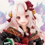 Nakiri Ayame, a VTuber from the second generation of talents from hololive production is coming out as a scale figure! She comes to life brimming with confidence in her pose, which overflows with cuteness from all angles. The delicate design of her outfit, including the mask on her head, has been sculpted down to the finest detail. Even the tattoo on her back that is usually hard to see has been fully recreated. Clear parts are used on her flowing hair to create a beautiful finish, and the gradient from white to red has been carefully painted. The base is designed after her fan mark. Add this Nakiri Ayame, “kawayo” from all angles, to your collection today!