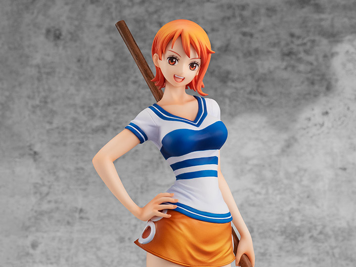 Nami joins the Playback Memories series of figures wearing her first outfit in the One Piece series! Nami stands around 9 inches tall and comes with interchangeable accessories and holds her bo staff, ready to kick butt and take names.