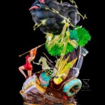 This statue is an interpretation of the episode « A Lightning Counterattack! Nami and Zeus the Thundercloud » from the Whole Cake Island arc, during which Nami uses a lightning attack to help her friends escape Big Mom in the Seducing Woods! As Luffy’s group treads the meringue soil of Whole Cake Island, surprises are in full swing! Seeing Sanji then losing sight of him, they sink dangerously into the mysterious Seducing Woods delightfully playing with their minds… Very dense, its flora is made up of Homies: living trees, candies and sweets in Big Mom’s service… Deprived of King Baum, getting out of this cursed place where Nami’s log pose is out of order seems complicated but not impossible! Intelligent and lucid, the Straw Hat Pirates’ navigator quickly understands that it’s a trap!