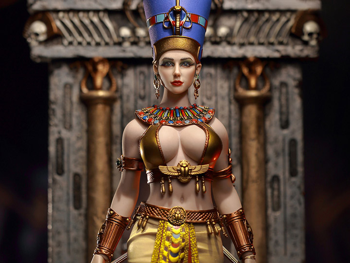 One of the most mysterious and powerful women in Egypt’s history, Nefertiti was queen alongside Pharaoh Akhenaten. Daughter of Ay and mother to Anck Su Namun, Nefertiti ruled the New Kingdom after her husband’s death. She is now an inspiration for this striking 1/6th scale action figure. Nefertiti is without a doubt the most iconic queen ever to rule over ancient Egypt.