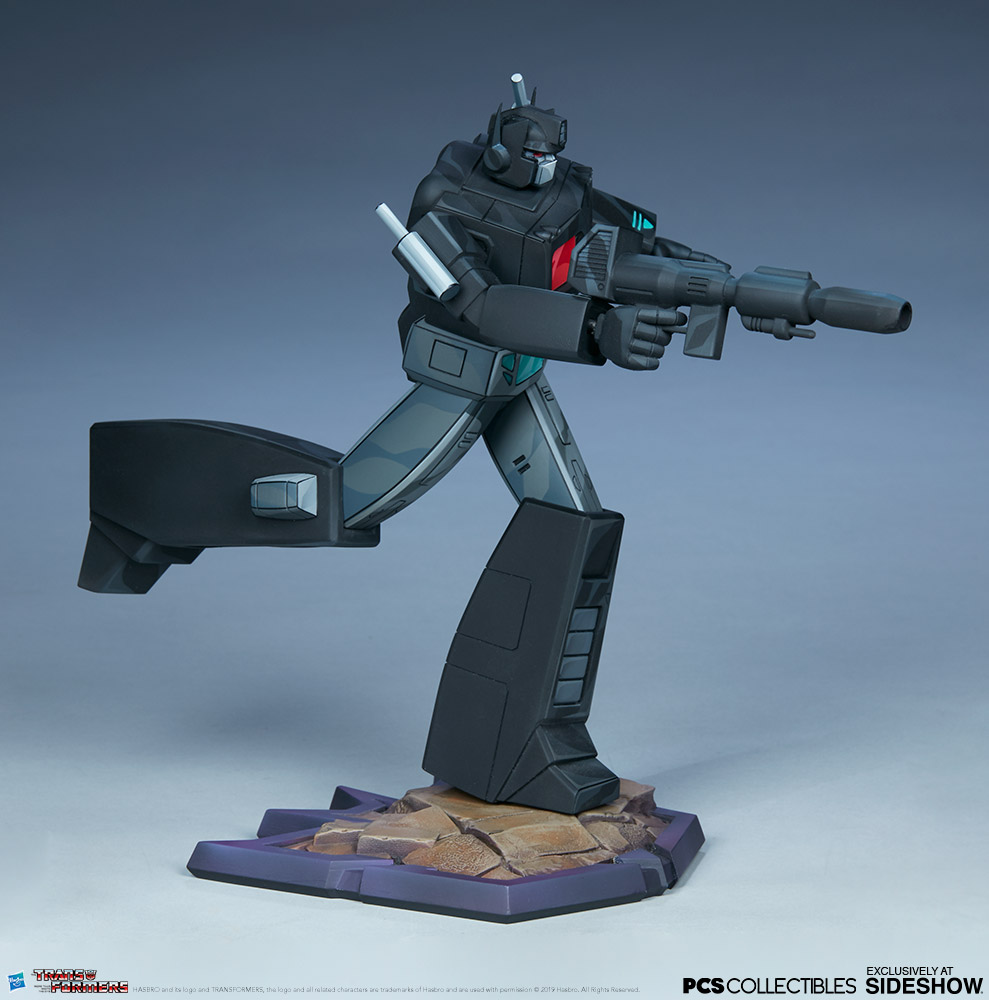 The Nemesis Prime Classic Scale Statue features a unique and meticulous paint application to capture the iconic two-dimensional style of the Generation 1 Transformers cartoon as a three-dimensional collectible. Nemesis Prime is detailed with light and dark grey tones with red and blue accents to recreate his signature animated look. His left shoulder also features a purple Decepticon logo, showing his dark allegiance. Pair Nemesis Prime with the Optimus Prime Classic Scale Statue for an incredible showdown in your Transformers collection.