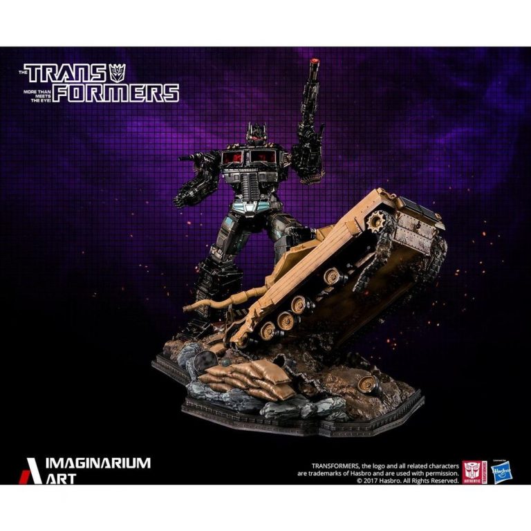 The Transformers Generation 1 Optimus Prime statue stands 24.4 inches tall and features the Autobot Leader in the midst of battle. This statue features LED light up functions, several interchangeable arms, and a diorama base with trailer and roller.
