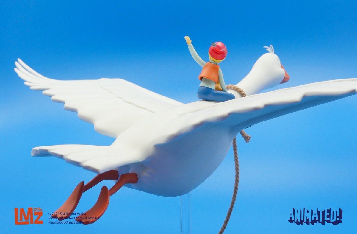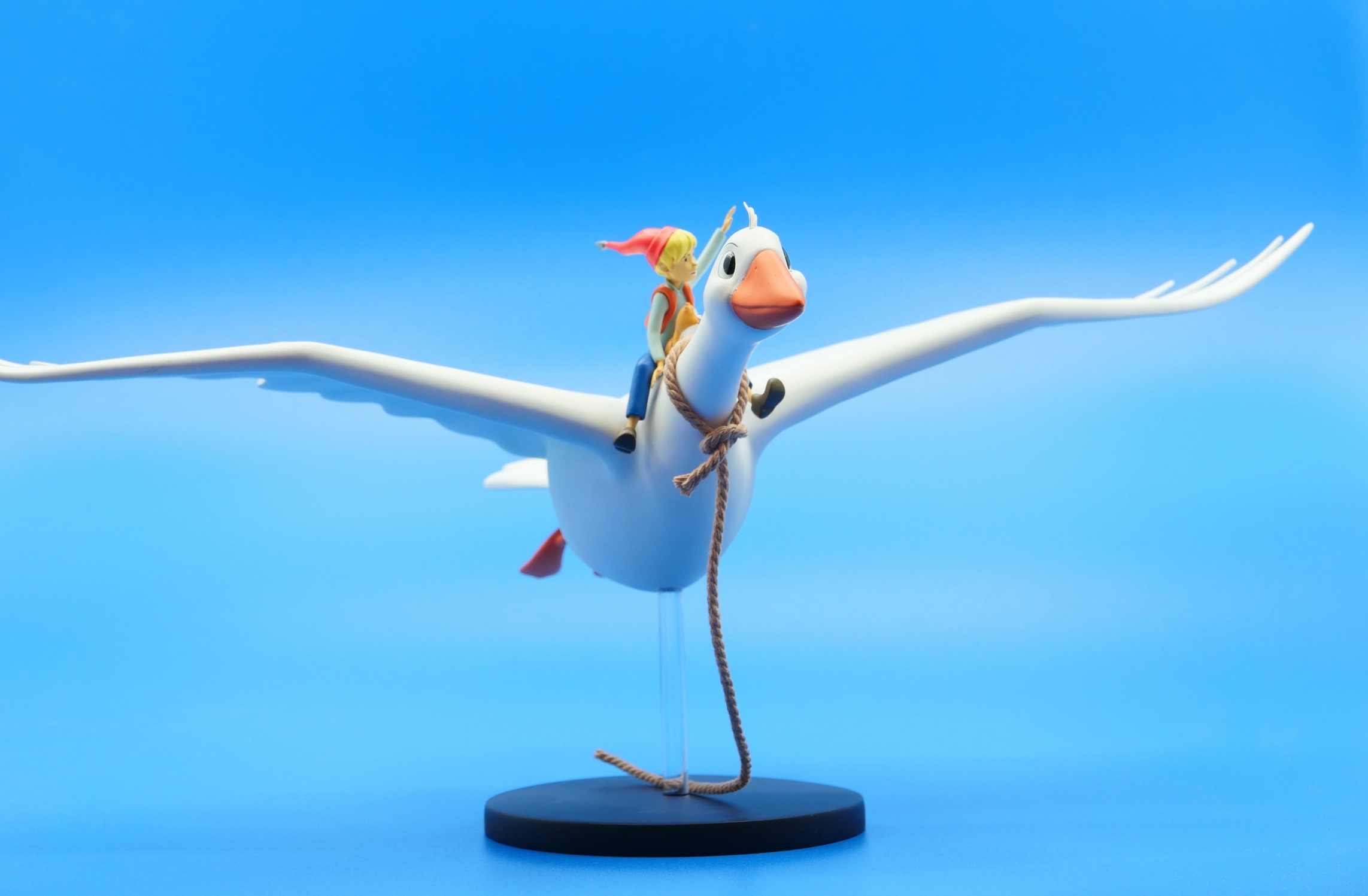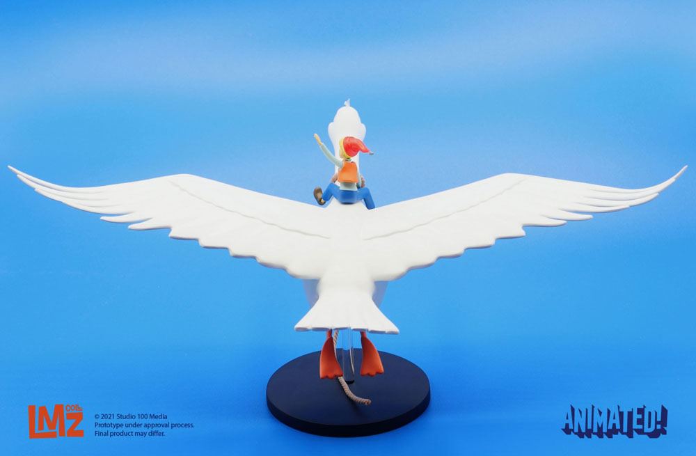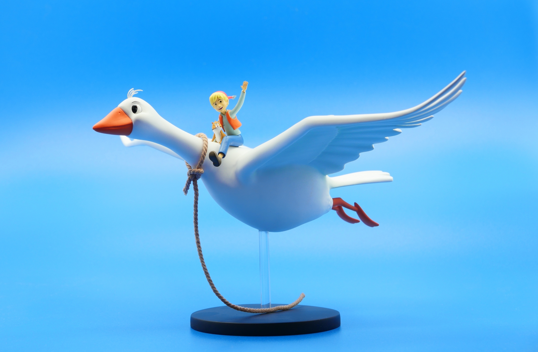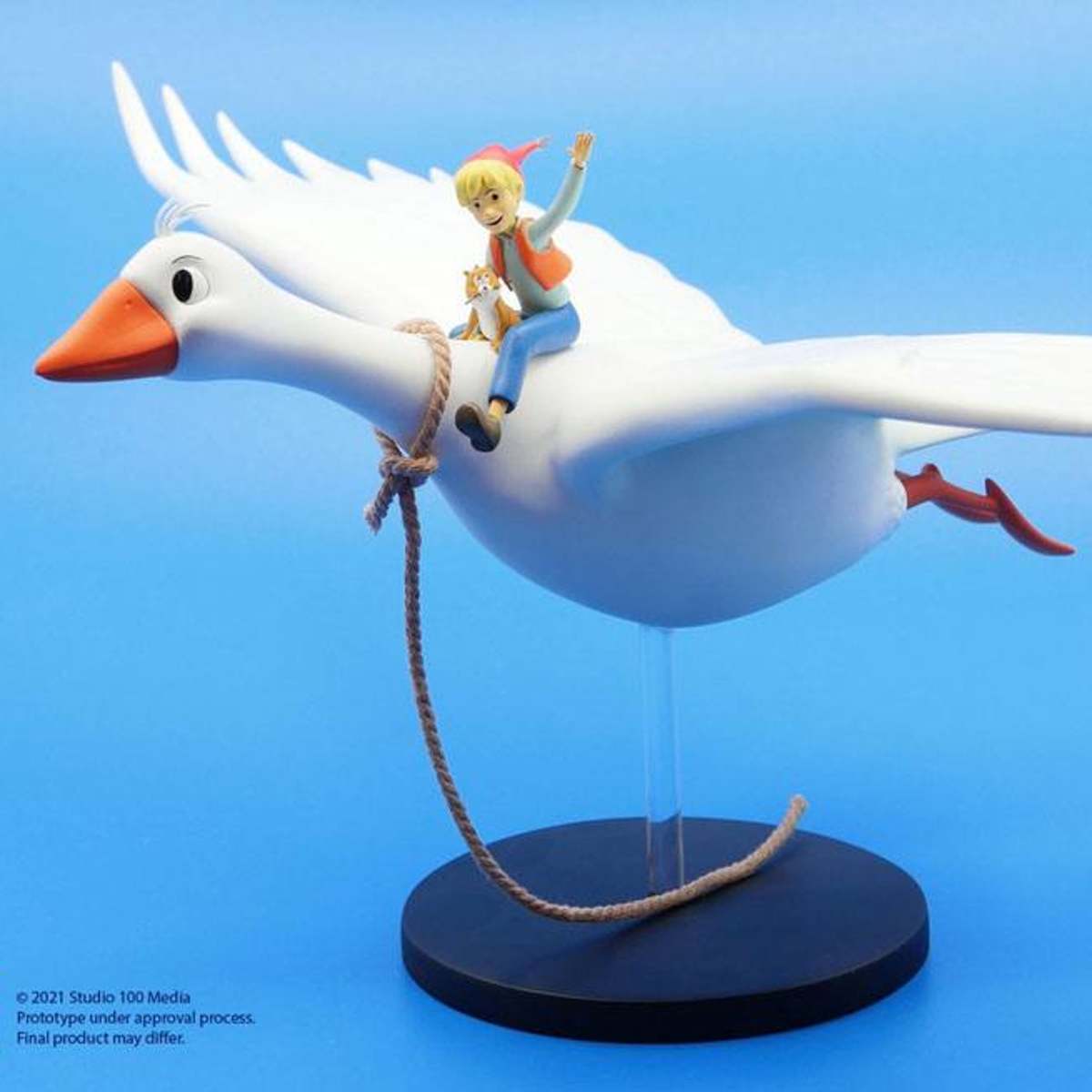 If Selma Lagerlöf, Nobel Prize for Literature in 1909, had been predicted that her Nils Holgersson, after crossing Finland from North to South, would travel around the world, then land at the dawn of the 80’s in a Japanese animation studio to be made into a statue 4 decades later by an inspired sculptor, no doubt that she would have remained dubious. And yet, what could be more universal than the adventures of this repentant rascal, cousin of Tom Pouce and ethologist before his time? Neither Morten the gander nor Carrot the tiny hamster would claim the contrary. Do not hesitate any longer, it is up to you to believe it, take your momentum and let yourself be taken on a cruise on the gander of Nils. Molded, assembled and hand painted.