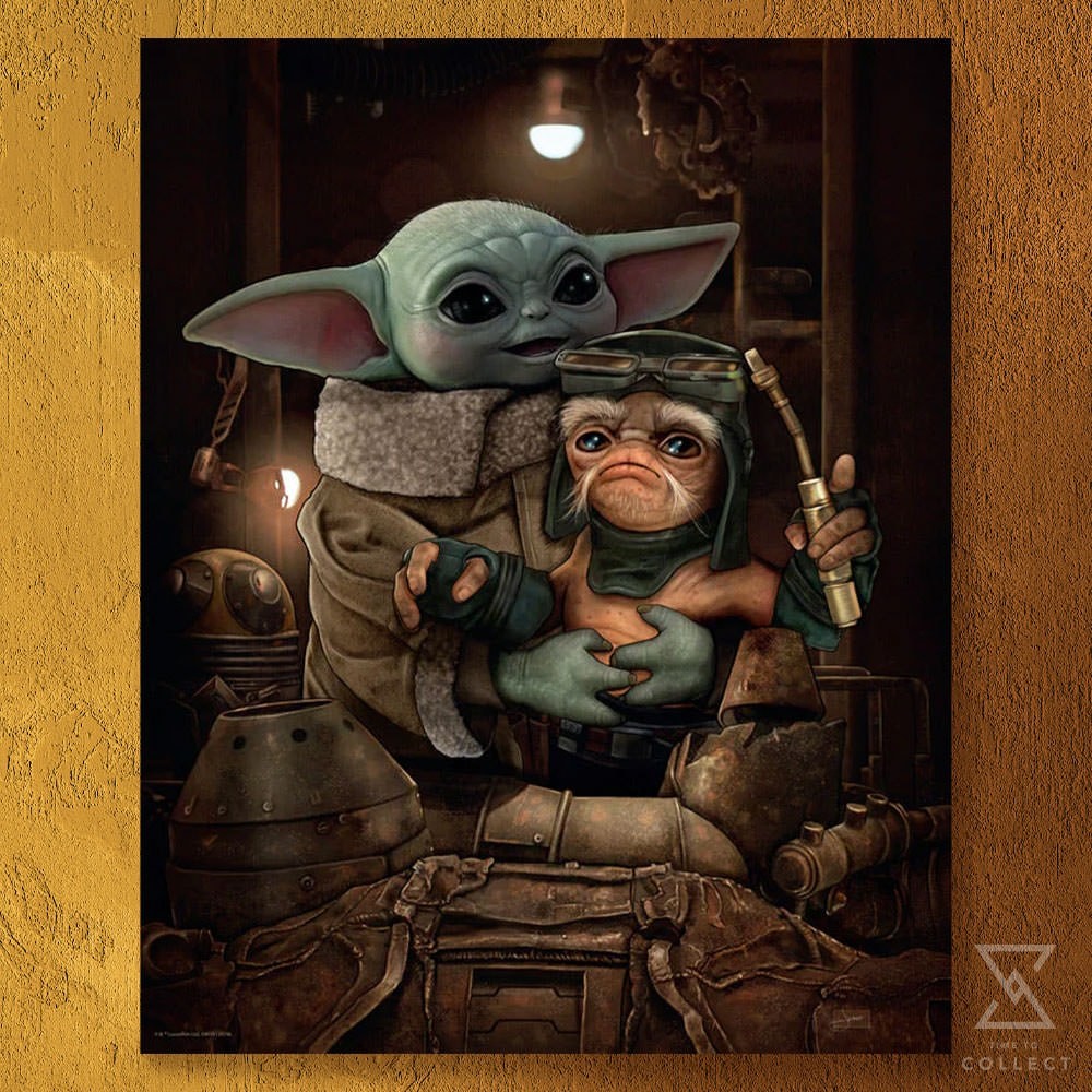 Snuggle up close to Grogu and Babu Frik in this adorable Mandalorian-inspired Star Wars artwork. Each fine-art lithograph print is hand-numbered from a limited edition of 250 pieces and includes a Certificate of Authenticity.