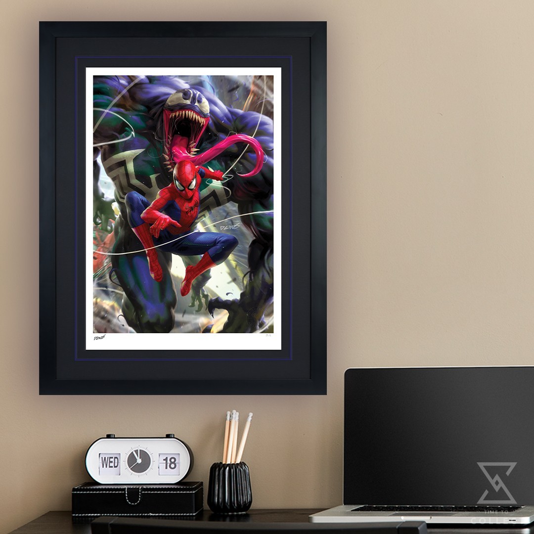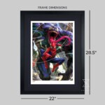 Originally created as a variant cover for Non-Stop Spider-Man #1 (2021), written by Joe Kelly for Marvel Comics, this Spider-Man art is now available to fans as an unframed giclée print or in a custom framed presentation. Each Non-Stop Spider-Man! Fine Art Print features an authorized, automated artist signature and an embossed Sideshow Seal of Authenticity as part of the limited edition of 200 pieces.