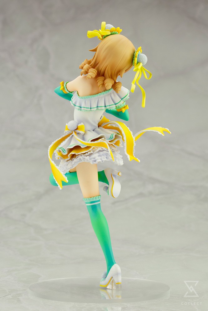 A KOTOBUKIYA Japanese import! The next adorable contestant is here to join the Ani*Statue line from the Japanese hit video game and anime series IdolM@ster, bringing the fast-paced and exciting world of managing pop idols to life. A skilled girl who suffers from nervousness and fear, Nono Morikubo has nevertheless gathered up the courage to perform for you in this amazing display piece and the first figure ever made of the character! The young artist poses hesitantly as she sings, standing on one leg with the other tucked up beneath her and leaning back while making a heart gesture to you with her hands. Nono wears her iconic “Negative Otome” costume with a stunning amount of detail on her green, yellow, and white outfit with tall stockings, detached sleeves, seemingly endless frilled and ruffled skirts, a layered top with extravagant accessories, and bows and ribbons added all over (including her hair) to complete the look! Singing her heart out, the troubled girl tilts her head back to look at you with eyes brimming with tears, though she tries to hide her discomfort with a forced smile. Sculpted by Tsukamato Tomokatsu (modeloft), Nono Morikubo stands nearly 7 ½ inches tall (1/8 scale) balancing on one foot atop her specially designed display base. Bring home the nervous girl to perform for you, whether she’s a solo act or displayed alongside other IdolM@ster Ani*Statues from Kotobukiya!