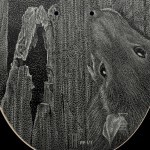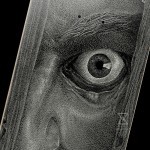 Inspired by the classic silent film Nosferatu, eine Symphonie des Grauens, Timothy Pittides’ vision of the vampiric Count Orlok is a horrific sight to behold! In the artist’s own tribute to the iconic work, the dreaded creature peers from the broken boards of his coffin as rats crawl around its surface. His piercing gaze and equally piercing fangs mesmerize and menace the viewer in this detailed black and white design.