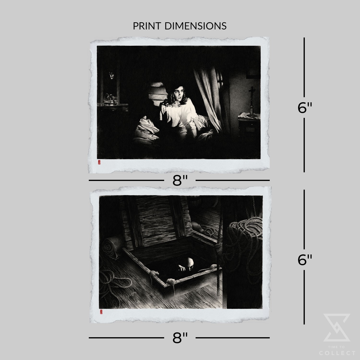 - Each print measures 8″ x 6″, unframed