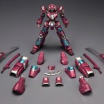 A Kotobukiya Japanese import! Continuing the hit line of original robot model kits in the Frame Arms series are two brand new designs starting with a unique robotic samurai, the NSG-Z0/D Magatsuki! Featuring large feet, ornate hip armor, arm shields, and a decorative head, the Magatsuki is resplendent in its royal crimson and silver color scheme with aqua highlights and is sure to stand out in your display. Like the other Frame Arms robots the NSG-Z0/D has a basic robot skeleton, or “Frame,” which is highly articulated and covered in universal 3mm attachment points. Its armor and weaponry is unique, while all parts are fully interchangeable between all Frame Arms units and compatible with Koto’s M.S.G. (Modeling Support Goods) series of support units as well as the Border Break robots. Comprised of approximately 300 pre-colored parts, the Magatsuki stands over 6 ½ inches tall (1/100 scale) with 30 points of articulation for extreme poseability and a full array of interchangeable weaponry!