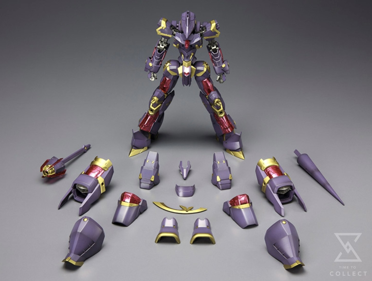 A Kotobukiya Japanese import! The second in a new wave of original Kotobukiya robot model kits brings a sleek metal knight to your collection with the all new Frame Arms NSG-Z0/E Durga I! Resembling a giant robot clad in striking purple, yellow, and red medieval armor, the Durga I features heavy plating especially on its knees and massive shoulders. The knightly look is completed by a crested helm-like head unit, and traditional melee weapons like a giant-sized lance and mace! All Frame Arms robots including the Durga I have a basic robot skeleton, or “Frame,” which is highly articulated and covered in universal 3mm attachment points. Its armor and weaponry is unique, while all parts are fully interchangeable between all Frame Arms units and compatible with Koto’s M.S.G. (Modeling Support Goods) series of support units as well as the Border Break robots. Standing over 6 ½ inches tall (1/100 scale), the Durga I is comprised of approximately 400 pre-colored parts and when fully assembled features 30 points of articulation for great posing options.
