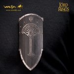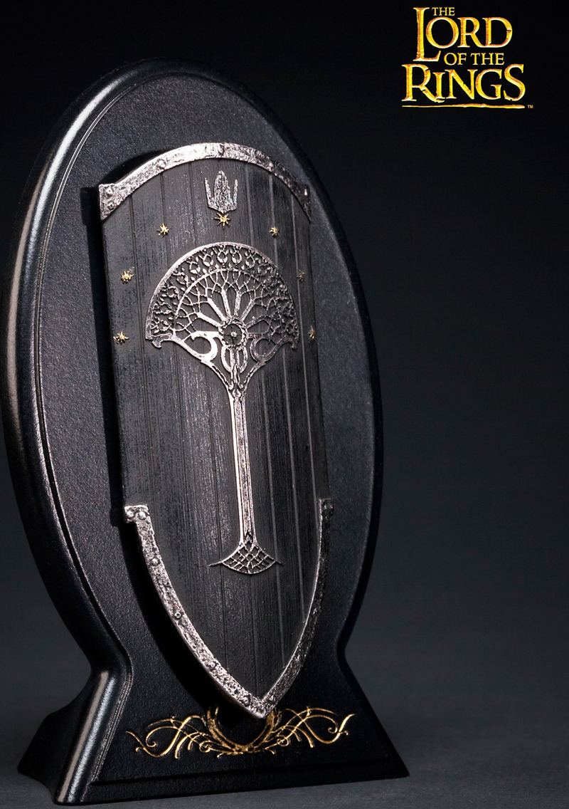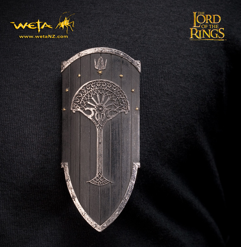 This is an exact miniature version of the actual prop Weta made for The Lord Of The Rings, made by the same artists and craftsmen who made the original. Made from metal, these shields can be worn as a badge or be displayed on the polystone stand.