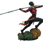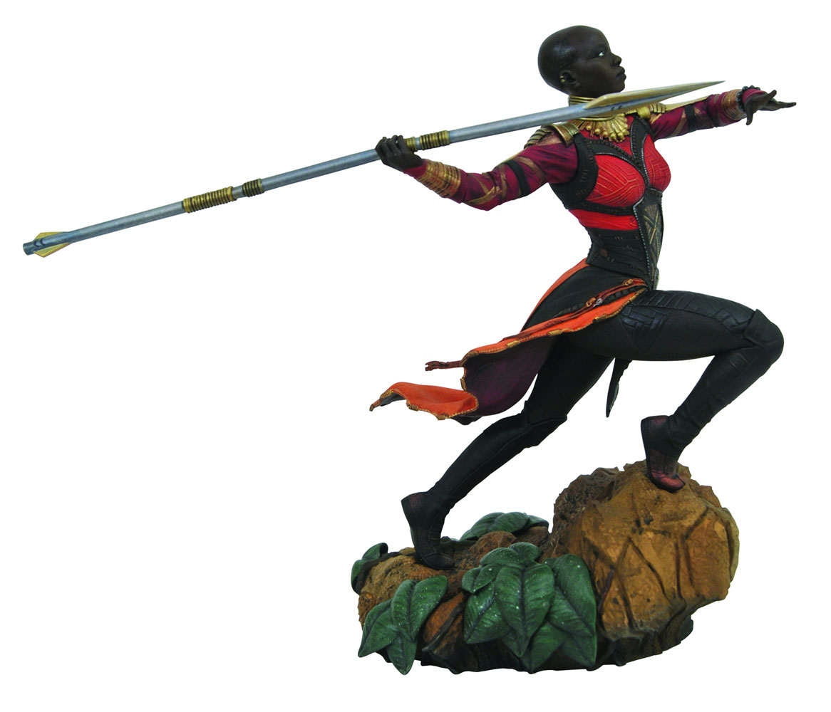 A Diamond Select Toys release! Her kingdom for a Starbucks! Okoye, leader of the Dora Milaje and protector of T’Challa, defends her homeland against incursion from the outside world – and other worlds entirely – with her impressive spear. Preparing to let loose with her chosen weapon, Okoye stands approximately 9 inches tall and features detailed sculpting and paint applications. Sculpted by Rocco Tartamella based on a design by Nelson