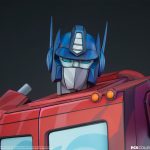 Optimus Prime features a cel-shaded deco application that captures the iconic animated appearance of the Generation 1 Transformers. The Optimus Prime G1 Museum Scale Statue is detailed with red, blue, and grey tones with yellow accents to evoke the classic two-dimensional art style in a three-dimensional form.