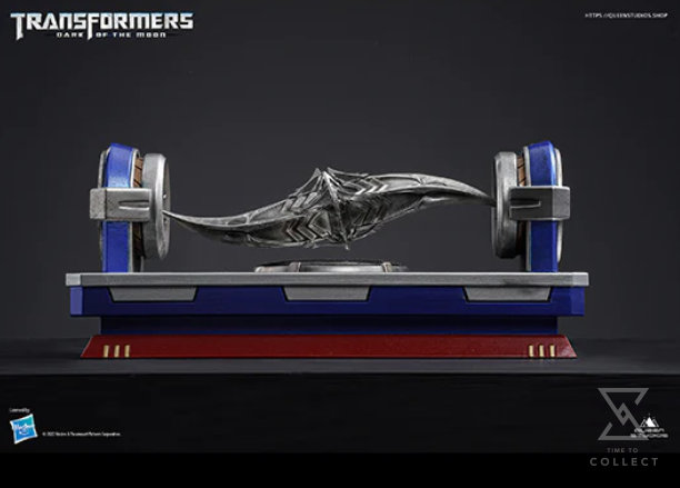 This bust stands at 92cm tall and is 110cm wide. It presents Optimus Prime like you’ve never seen him before, human-size scale; this scale is like that of a person. It includes every single detail of the Autobot’s torso and captures the brilliant red, blue, and brushed metal design of the Freightliner fl86. Optimus is facing leftwards and has two canons, one on each shoulder. The red paintwork resembles flames, burning across the Autobot’s torso. The back of Prime is open, revealing the internal mechanisms that power his being.