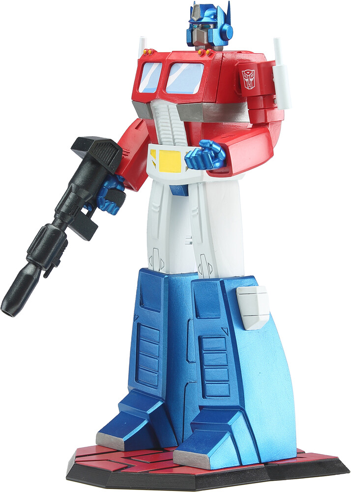 The Optimus Prime statue stands over 9” tall and is inspired by his appearance in the classic Transformers animated series. Armed with his Ion Blaster and featuring an eye-popping metallic paint application, this Optimus Prime statue stands ready to lead the Autobots into battle!