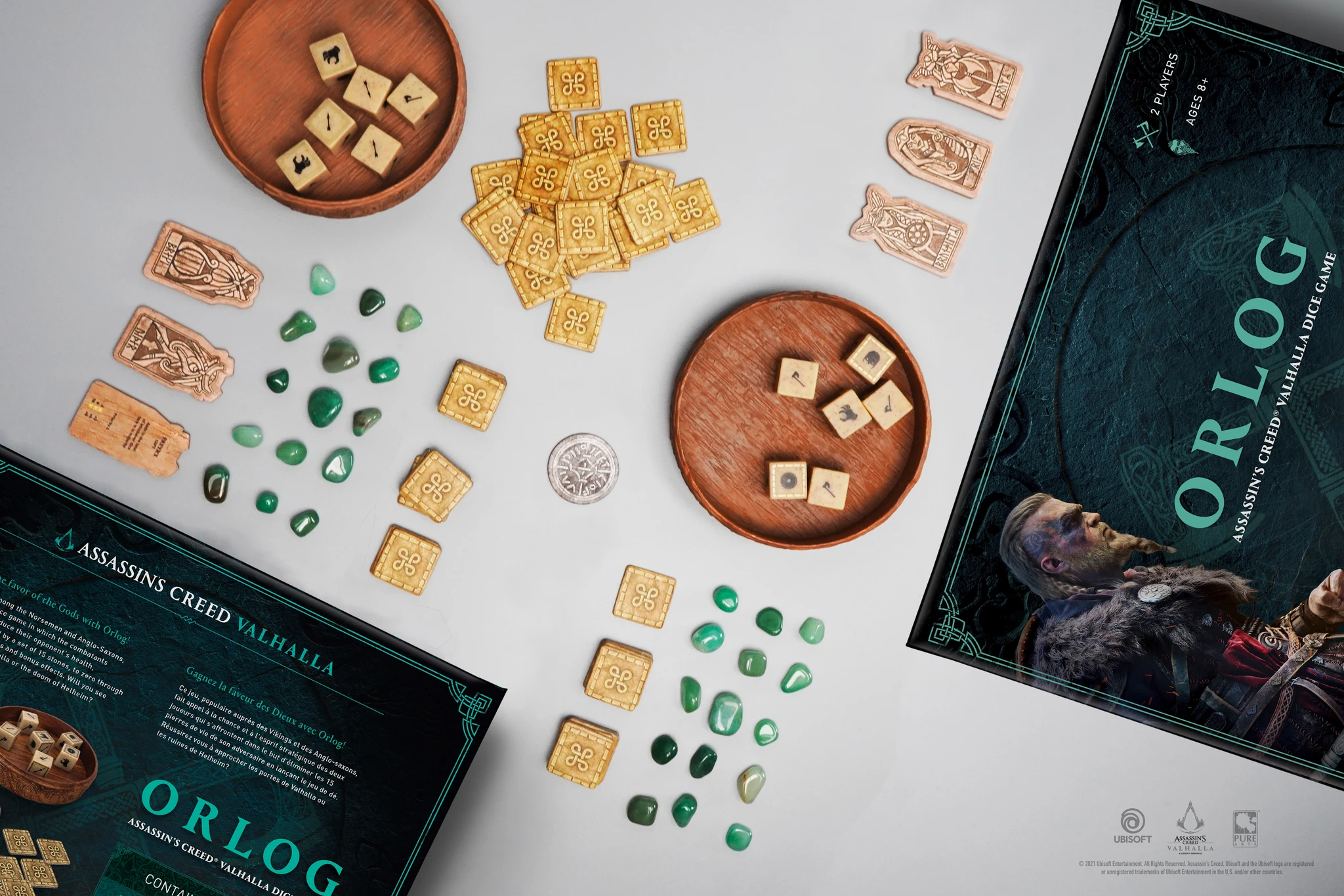 PureArts and Ubisoft present the official WORLDWIDE Retail Edition of the Orlog dice game from Assassin’s Creed® Valhalla! Played extensively by the Norsemen and Anglo-Saxons in every city of the video game, Orlog is played by two players who use dice rolls and bonus effects to claim victory over their opponent.