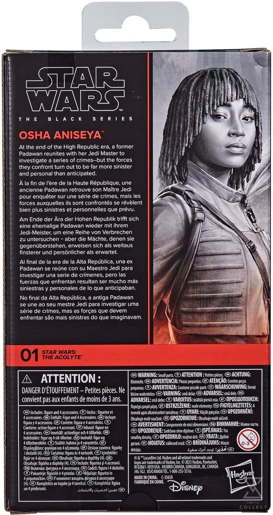 Star Wars The Black Series includes 6 inch action figures, vehicles, and roleplay items from the 40-plus-year legacy of the Star Wars Galaxy, letting fans create galactic scenes with a faithfulness to Star Wars comic books, movies, and series. This Star Wars action figure is detailed to look like Osha Aniseya from Star Wars: The Acolyte. With exquisite features and decoration, The Black Series embodies the quality and realism that Star Wars devotees love. May the Force be with you! (Additional products each sold separately. Subject to availability.)