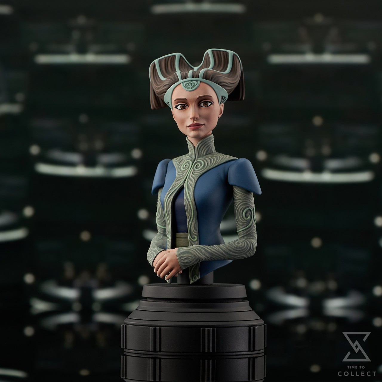 A Gentle Giant Ltd. release! The mother of Luke and Leia and the wife of Anakin Skywalker looks resplendent in her Senatorial garb in this all-new 1/7 scale mini-bust based on her appearance in the Clone Wars cartoon. Measuring approximately 6 inches tall atop a pedestal base, Padme Amidala joins the rest of the cast of Clone Wars and Rebels as a mini-bust, and comes packaged with a numbered certificate of authenticity in a full-color window box. Limited to 3,000 pieces.