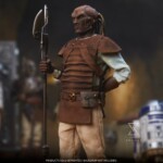 Inspired by the character’s appearance in Return of the Jedi™, this fully articulated, highly poseable high-end Star Wars figure wears tailored fabric clothing accurate to his on-screen ensemble. His outfit includes a white shirt and tan trousers, over which he wears dark brown armor in a leather-like texture as well as a matching belt, gloves, and boots. Additionally, the high-end figure features synthetic hair elements plaited and tied back in a style befitting his species’ affinity for intergalactic piracy. The Pagetti Rook™ Sixth Scale High-End Collectible Figure also includes a pair of relaxed hands and a pair of gripping hands for the vibrospear accessory.