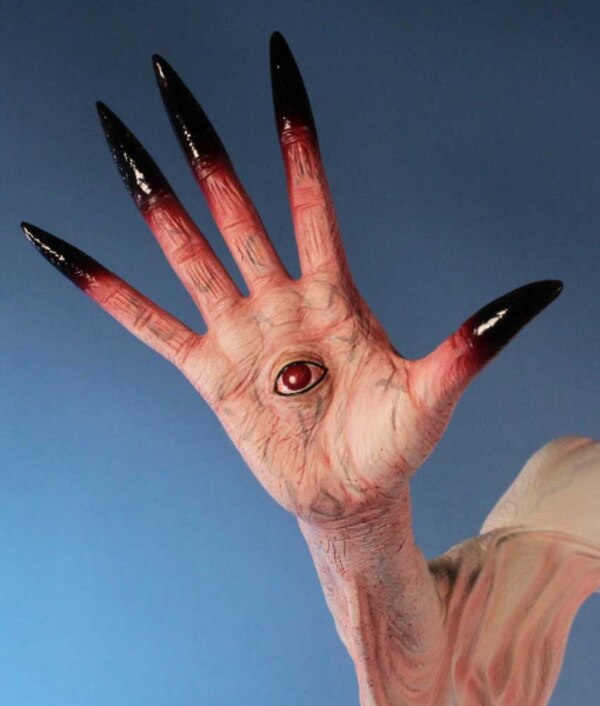 THE PALE MAN; who gorged on excess was banished to a den in the netherworld. Unable to feast on the banquet before him, his body shriveled and his humanity withered away. His only sustenance was the blood of innocents. A meal he relished in hunting himself. He kept a watchful eye over a dagger with a hilt of gold, for he feared it to be the only object that could cause him harm. In truth it’s presence kept him alive. Once the blade was removed, he collapsed unto himself and faded from existence. From acclaimed filmmaker Guillermo Del Toro comes a dark fairy tale about a young girl named Ofelia, who enters a mysterious labyrinth and finds herself at the center of a ferocious battle between good and evil.