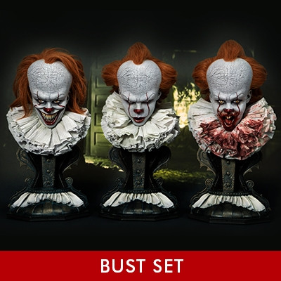Prime 1 Studio is proud to present HDBIT-ALL: IT Pennywise Bust Set from the worldwide success 2017 Horror film IT, drawn from the pages of Stephen King’s original novel. It Pennywise, often capitalized as “IT”, was the main antagonist in Stephen King’s IT. Pennywise was an ancient entity that would aware about every 27 years in Derry, Maine to cause chaos and feed on people’s fear and its choice victims are usually children. IT Pennywise Bust Set Portraits are compatible with HDMMIT-01: IT Pennywise Statue to give all iconic expression for your statue. Don’t miss out, this is a must add-on bust for your HDMMIT-01: IT Pennywise statue.