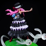 This Ikigai statue shows Perona rescuing the Straw Hat Pirates on the Sabaody Archipelago. As Luffy, Zoro, and Sanji make their way to the Thousand Sunny, the Ghost Princess helps them by fending off the Marines with her “Negatives Hollows”. Her ghostly look coincides with the aspect of her phosphorescent grimacing ghosts, dressed in her black and white dress and top hat, enhanced by her pink varnish, boots, watch, long twisted hair and bat tattoo. Her candid side hides a much more sordid reality, holding her stuffed toy resembling Kumashi in one arm, her huge round black eyes gaze with delight at the Navy’ men on whom she projects with her free arm her hungry ghosts in transparent resin! These specters are now swooping down on their prey to wrest any desire to live from them, the best way to enchant the dreaded former commander of the Wild Zombies!