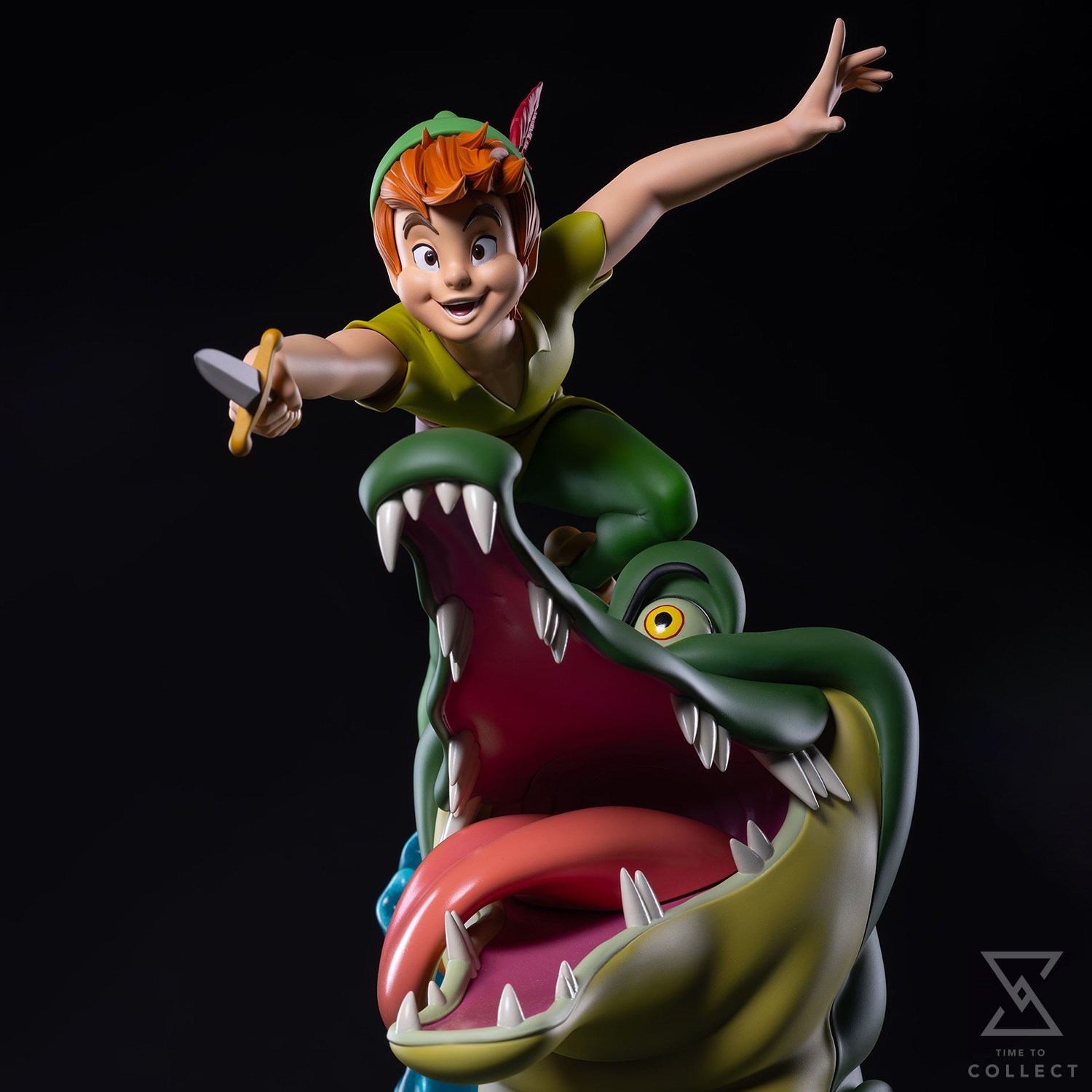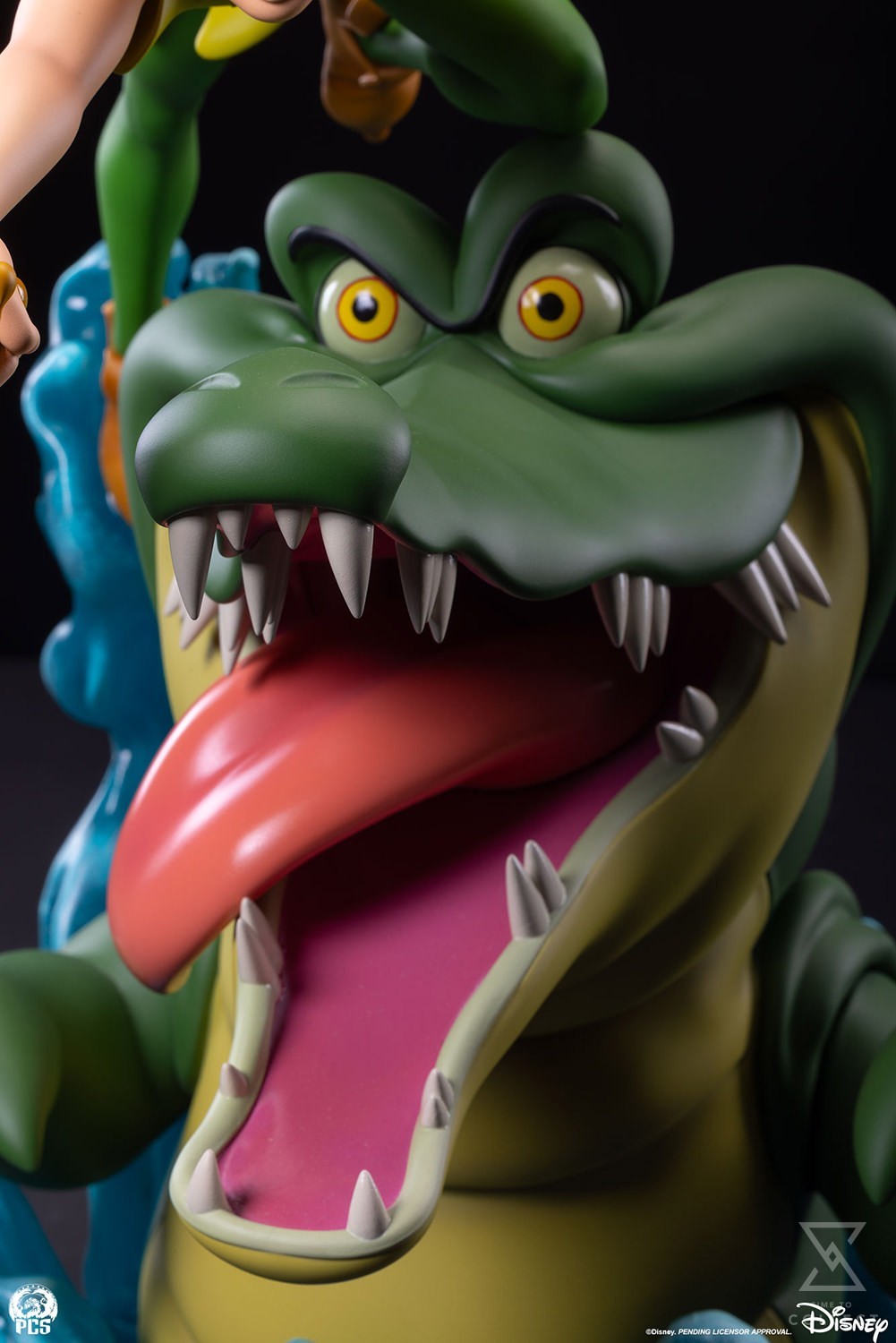 Peter is all smiles even in the face of danger as he playfully flies over the head of the massive croc bursting from the water below. This limited edition collectible is hand painted and individually numbered, and its screen accurate design is worthy of a place in any Disney fans collection.