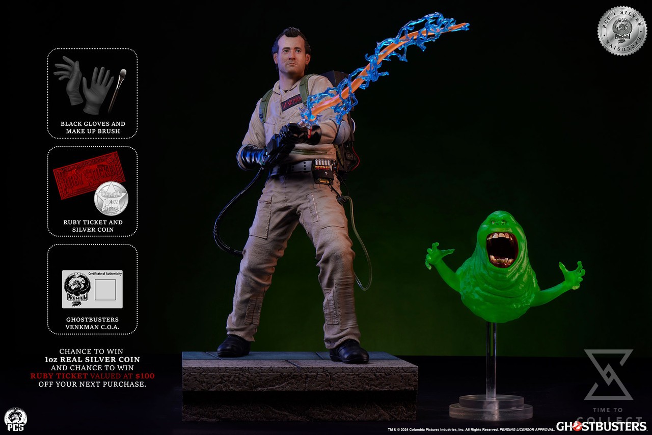 The PCS Silver Exclusive edition, limited to 150 pieces, includes the proton stream and a fully sculpted and unique Slimer accessory, as well as a metal Certificate of Authenticity and a statue cleaning kit. PCS Silver Exclusives also include the chance to win a 1oz silver coin and a Ruby Ticket valued at $100 in PCS loyalty points.