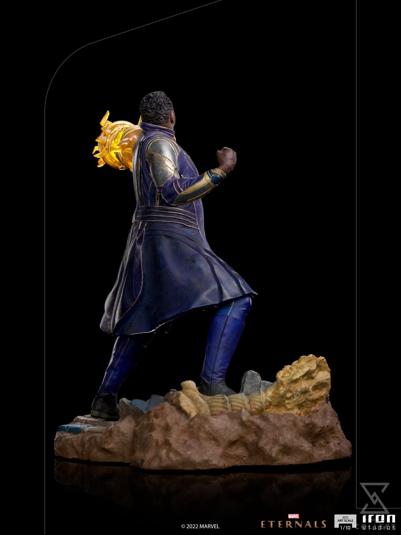 With a vortex of cosmic energy emerging from his arm, although he prefers to use his huge ingenious intellect to combat his enemies, he can also be an efficient and capable fighter when armed with his powerful rings of force. His creative mind helped him to boost humanity in technology, but he has always kept his brilliant mind hidden in the shadows as the creator of innovations such as the plow and the steam machine. Dressed in purple and silver armor to fight the Deviants, Iron Studios present the statue “Phastos BDS – Eternals – Art Scale 1/10”, with the most intelligent member of the Eternals’ team of thinkers.
