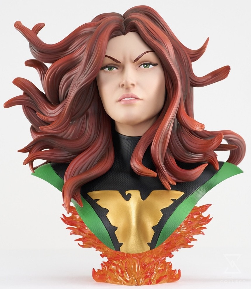 A Diamond Select Toys release! The galaxy will burn! Jean Grey ignites the Phoenix Force in this all-new ½ Scale bust, part of DST’s Legends in 3-Dimensions collection! Standing approximately 10 inches tall, this resin bust of the X-Men’s resident telepath and planet-destroyer sits atop a flaming base in her classic green outfit, with flame-tinged hair, and is limited to only 1000 pieces! It comes packaged with a numbered certificate of authenticity in a numbered, full-color box. Designed by Joe Allard, sculpted by Steve Kiwus!