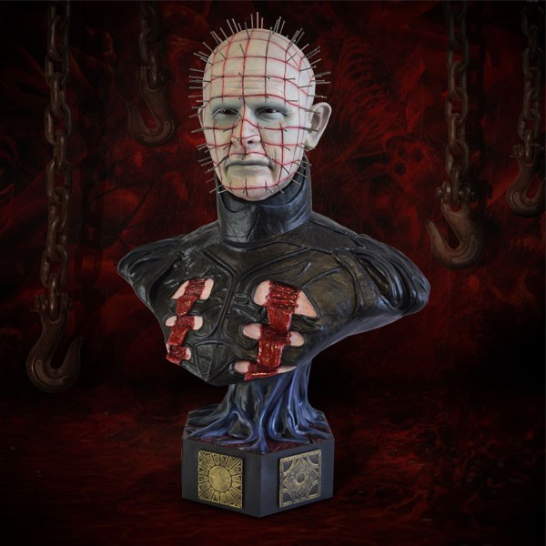 Constructed from fiberglass and mixed media and then hand painted to the finest detail, this highly detailed bust is the definitive centerpiece for any Hellraiser or Horror collection!