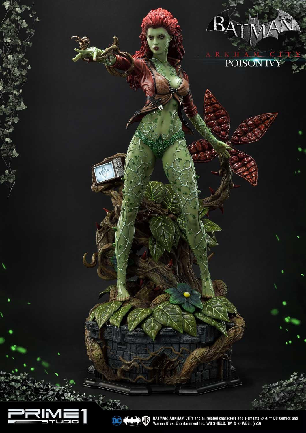 Prime 1 Studio is proud to present the beautiful piece from the Batman: Arkham City video game, the 1/3 Scale Poison Ivy. Batman: Arkham City is a 2011 action-adventure game developed by Rocksteady Studios and published by Warner Bros. Interactive Entertainment. Based on the DC Comics superhero Batman, it is the sequel to the 2009 video game Batman: Arkham Asylum and the second installment in the Batman: Arkham series. We did our best to recreate Poison Ivy’s forest green skin, full red lips and long red curly hair. The surface of her skin covered with leaves and roots that ran along some parts of her body is made with a great attention to details. There is a LED light-up function on the TV located on the base of the statue and interchangeable portraits so you could enjoy her different expressions. This is a must-have piece for all DC fans!