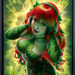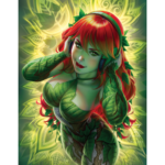 Leaf it all on the dance floor with this vibrant portrait of everyone’s favorite floral femme fatale, Poison Ivy! This Gotham City Siren is rocking out to an energetic beat with a pair of headphones that match her signature green getup. Her fiery red hair is framed by a halo of neon leaves and swirls, accentuating Pamela Isley’s her natural charm. Fresh and fun!