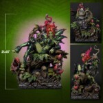 Gazing upon her subjects with the captivating aroma, Poison Ivy is poised majestically upon a throne of lush foliage and twisted vines, roots running deep. The intoxicating fragrance emanates from the overgrown verdant vegetation, hints of exotic flowers, lush greenery, and a touch of danger, said to draw any men under her enchanting spell. The artisans at Prime 1 Studio, once again, with the help of Carlos D’Anda, have crafted this mesmerizing piece that truly captures her allure and power, with every vine and leaf meticulously detailed to perfection. It stands as a testament to the craftsmanship and dedication of true collectors. From her beautiful facial features to the carnivorous plant life in the decayed remnants of their unfortunate victims, from the blossoming culmination of thematic elements on its front to the intricately etched stone and composted casualties on its back, this Poison Ivy collectible statue is a sight to behold from all angles. All hail Queen Ivy!