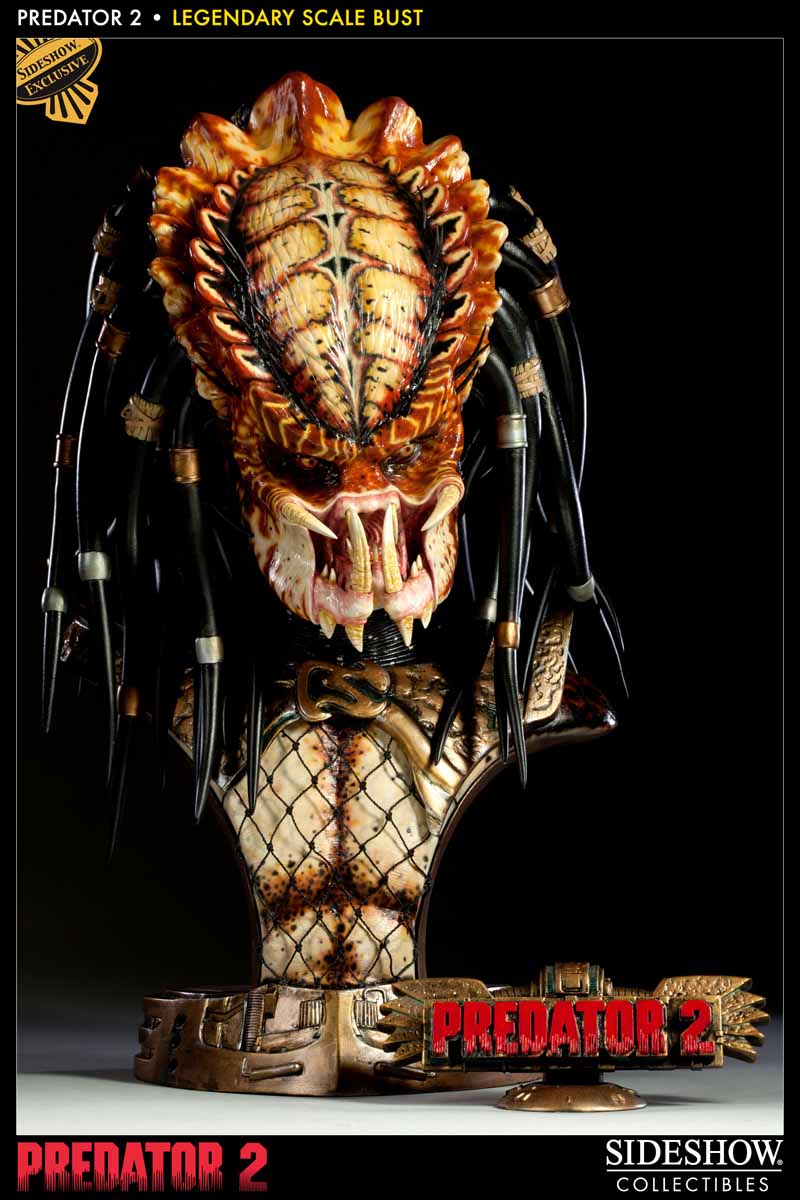 Sideshow Collectibles proudly introduces the Predator 2 Legendary Scale bust. Depicted in approximately 1:2 scale, every aspect of the fearsome hunter is captured with painstaking attention to detail. This tremendous bust measures approximately 18 inches tall, each piece is individually hand painted and finished, creating an exceptional addition to any Predator display.