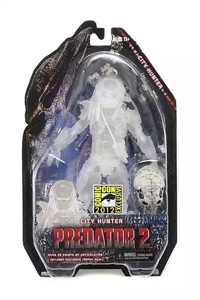 From the 1990 film comes this exclusive edition of the masked city hunter in his cloaked, stealth form. This figure stands 8″ tall and is cast in translucent plastic, featuring over 25 points of articulation, extendable wrist blades, and includes an exclusive trophy skull not available anywhere else.