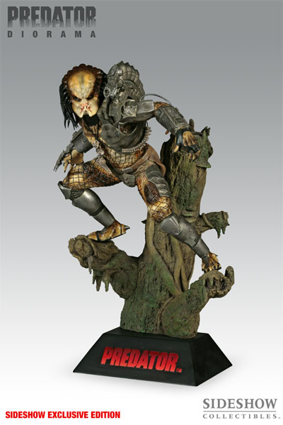 Sideshow Collectibles is proud to present the first Predator Diorama in the growing series of wall-mountable dioramas from the Alien and Predator film franchises. The diorama captures the fierce Yautjas creature, poised for the attack, adorned with an arsenal of hi-tech weapons. The Predator Diorama can be displayed on your desktop using the Predator logo base, or it can separate from the base and be wall-mounted for an easy alternate display option. The diorama is cast in high-quality, heavy-weight polystone, then hand-finished and hand-painted to exacting standards. Each piece is individually hand-numbered, and packaged in a durable foam interior and stunning printed box.