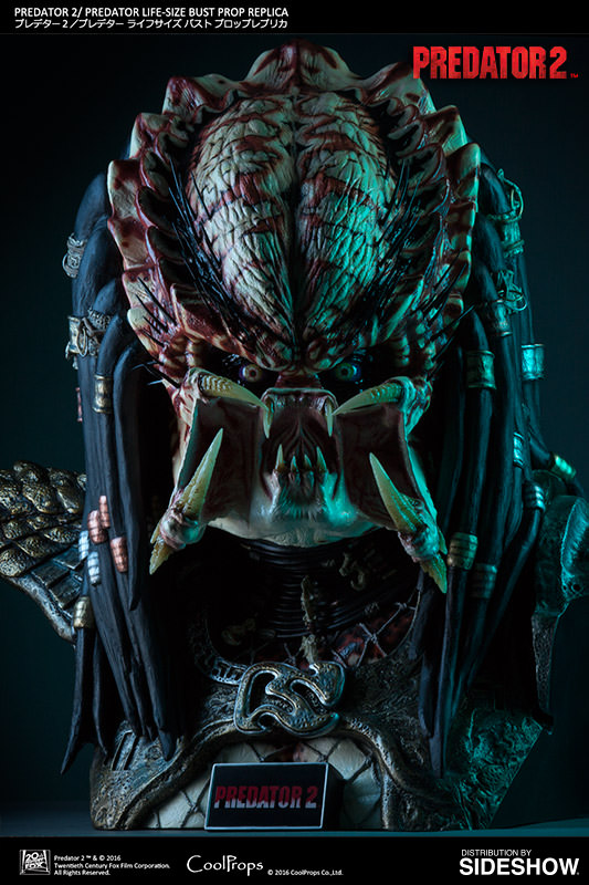 Sideshow and CoolProps are proud to present the Predator 2 Life-Size Bust Prop Replica from the 1990 movie Predator 2. This predator puts the citizens of the city of Los Angeles in a huge panic.