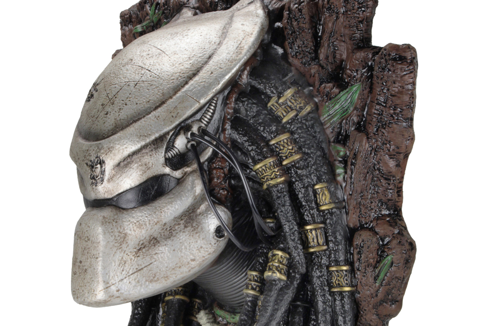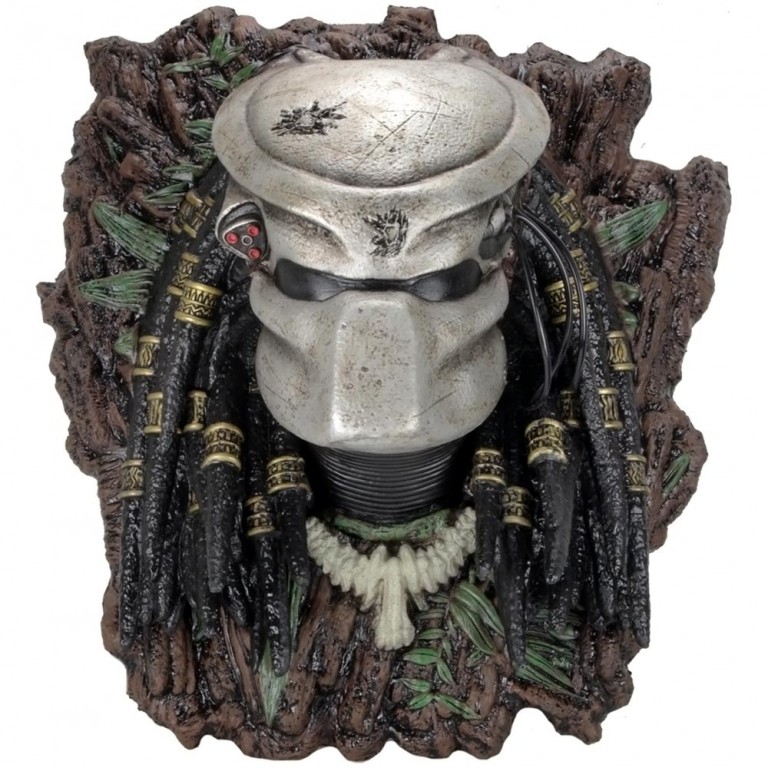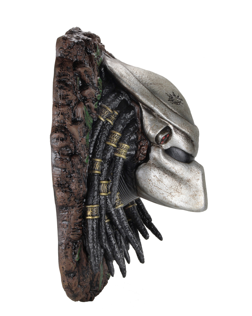 The Predator plaque is made of durable foam rubber and latex that is carefully hand painted for realistic detail. It measures 26 inches tall, over 23 inches wide, and almost 13 inches deep. It comes with everything you need to mount the plaque to your wall.