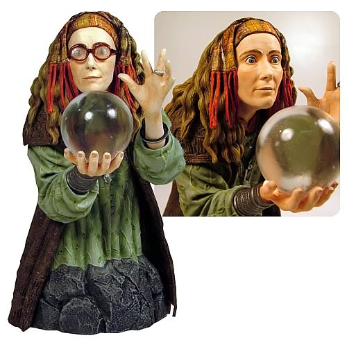 This highly detailed 1/6th scale poly-stone mini-bust features film accurate details and accessories, including a crystal ball and Professor Trelawney’s trademark glasses. This strictly limited production run comes with a hand numbered Certificate of Authenticity.