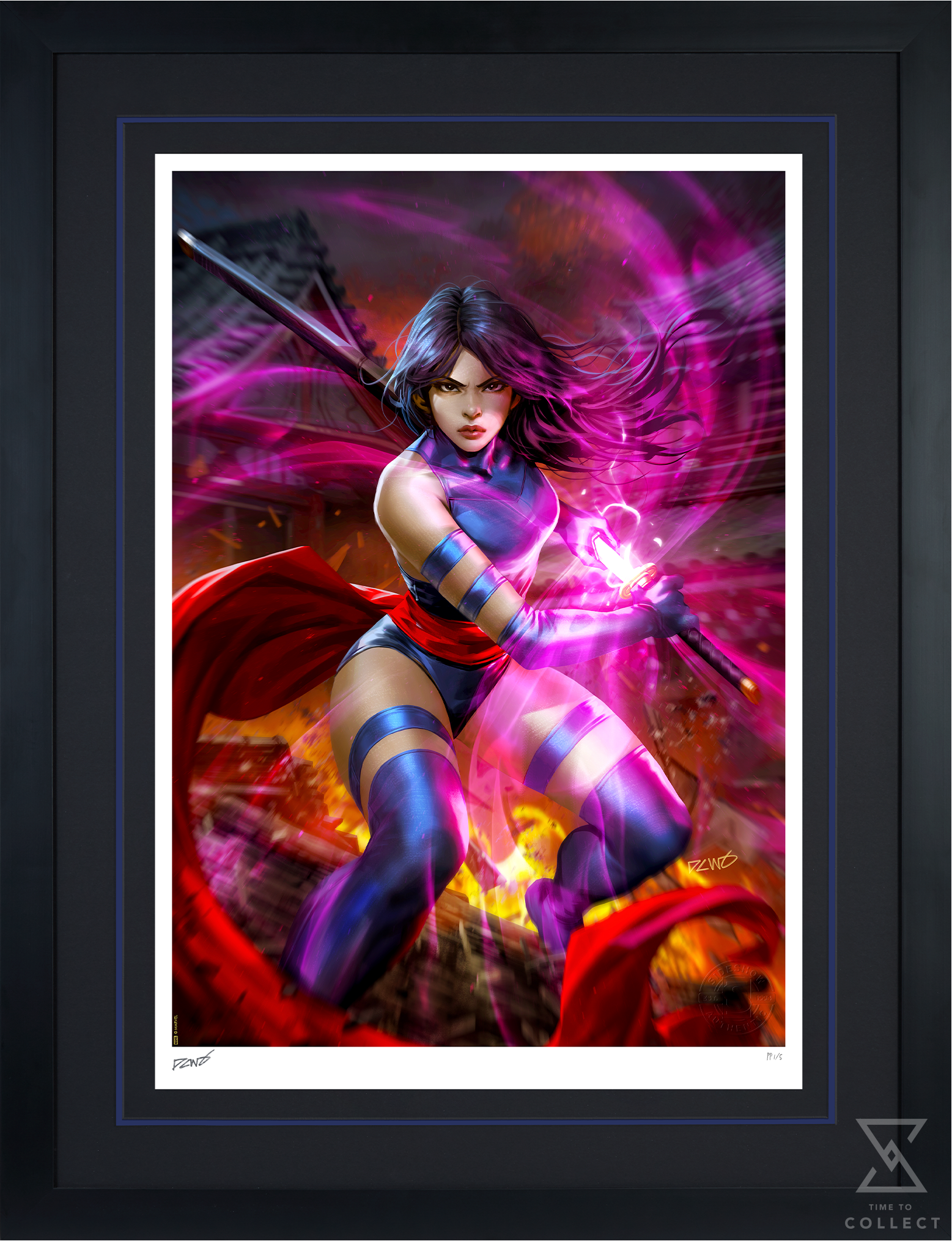 Inspired by Psylocke’s appearance in Marvel Comics, this X-Men art is now available to fans as an unframed giclée print or in a custom framed presentation. Each Psylocke Fine Art Print features an authorized, automated artist signature and an embossed Sideshow Seal of Authenticity as part of the limited edition of 200 pieces. Pair it with Sideshow’s Psylocke Premium Format™ Figure — sold separately — to create the ultimate tribute to this psychic mutant.