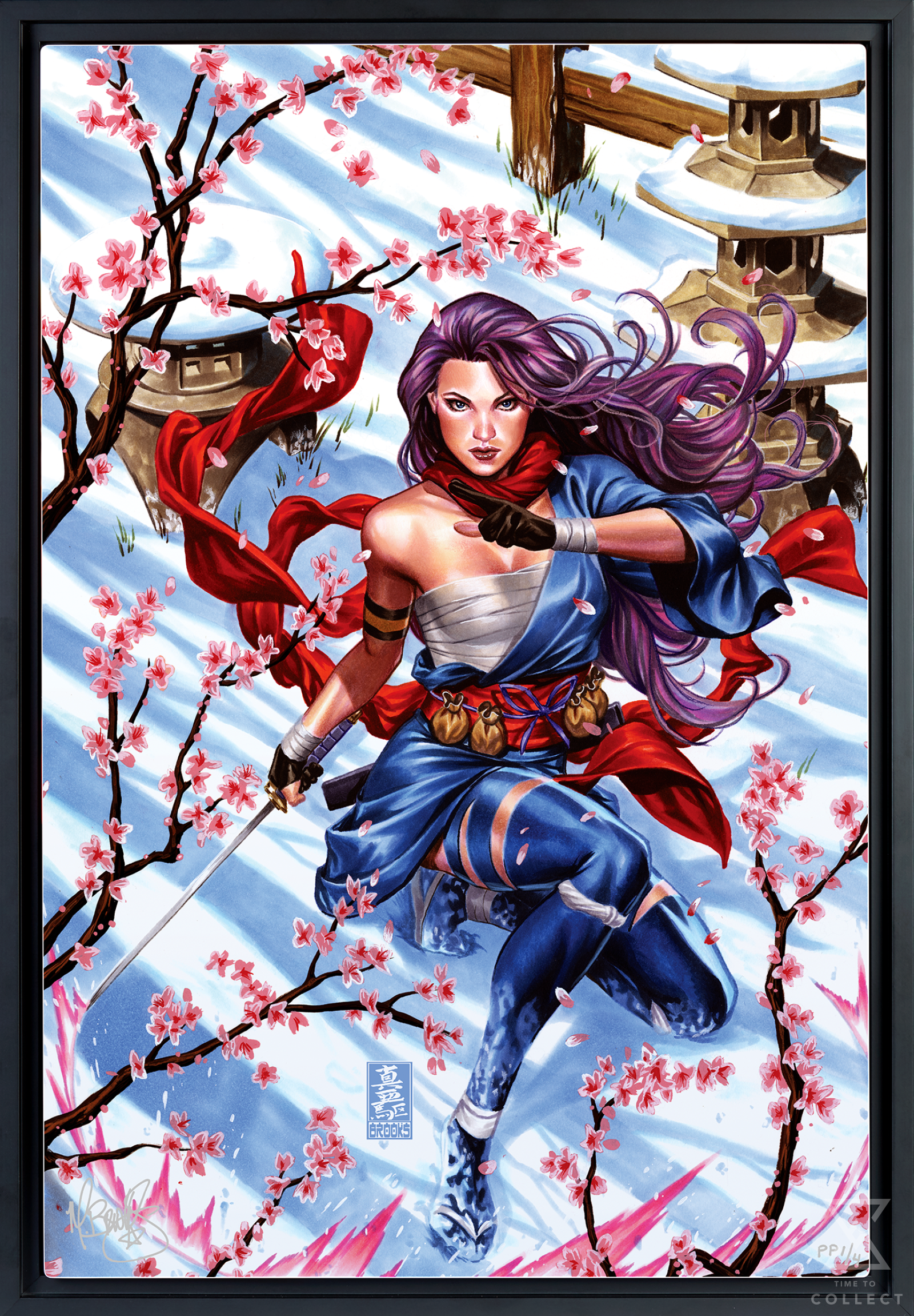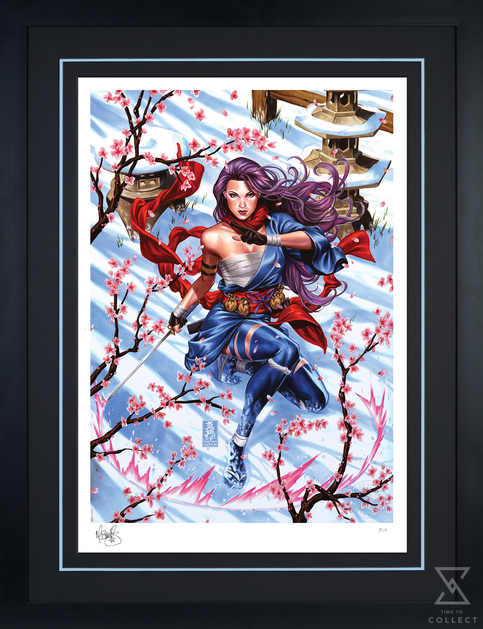 Originally created as a variant cover for Demon Days: X-Men #1 (2021), written and drawn by Peach Momoko for Marvel Comics, this X-Men artwork is now available to fans in a fine art format as an unframed giclée or in a custom framed presentation. Each Psylocke Demon Days: X-Men Fine Art Print features an authorized, automated artist signature and an embossed Seal of Authenticity as a part of the limited edition of 350 pieces.