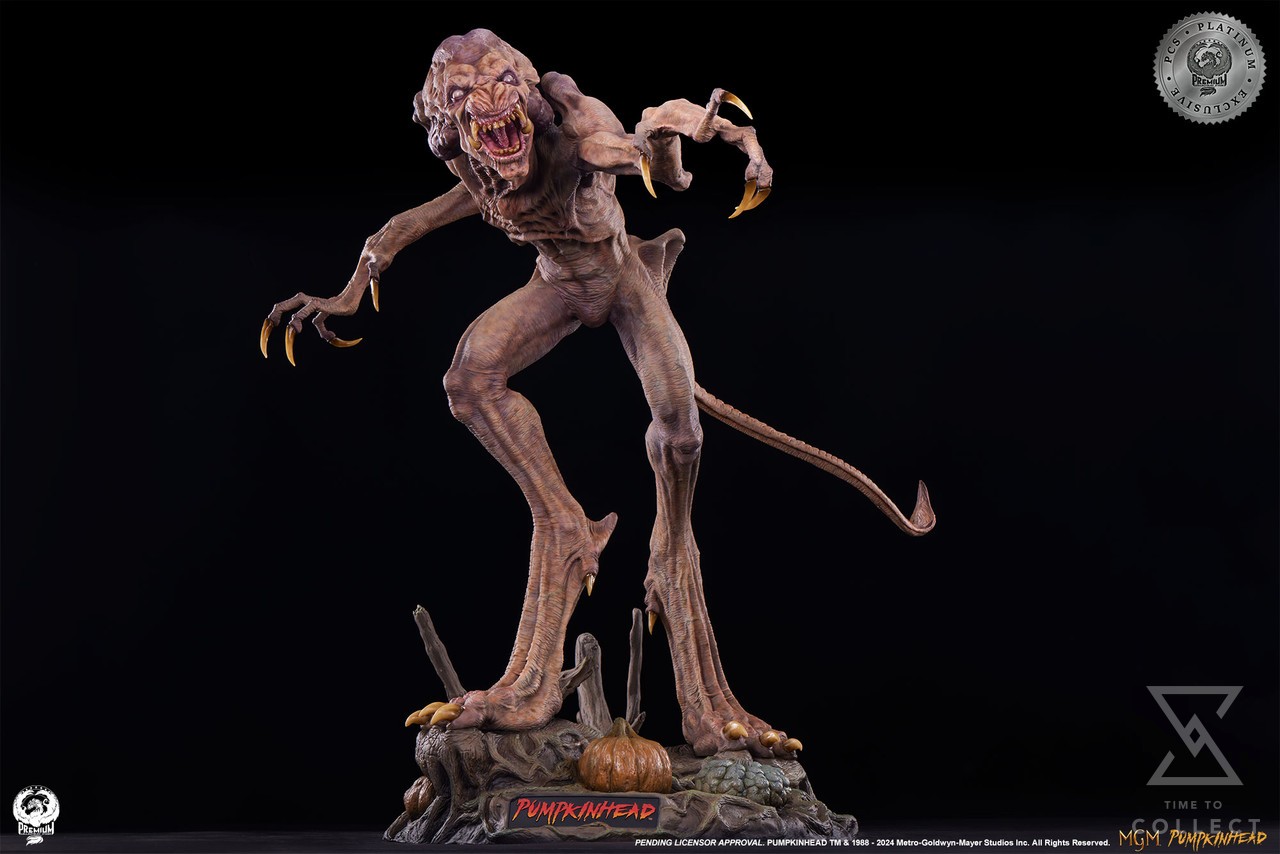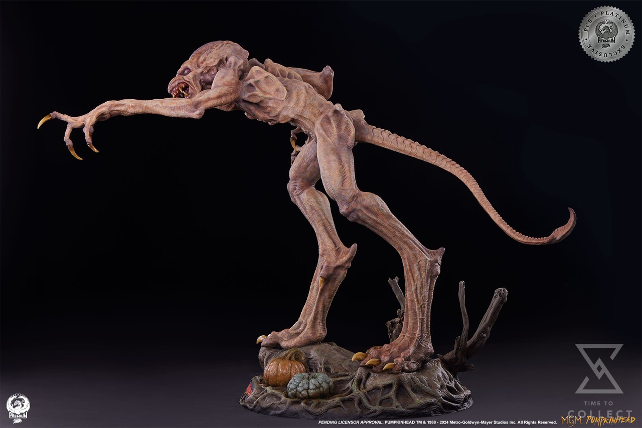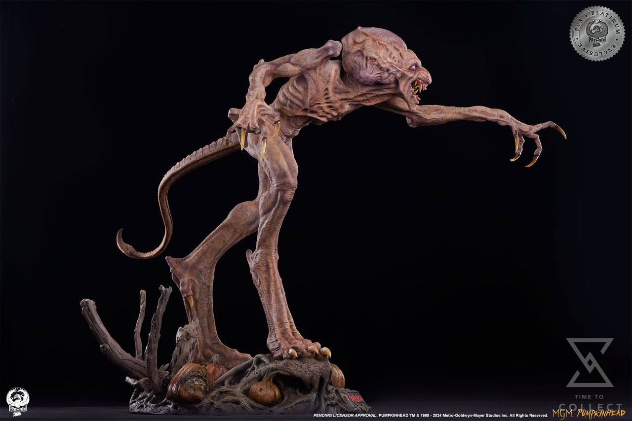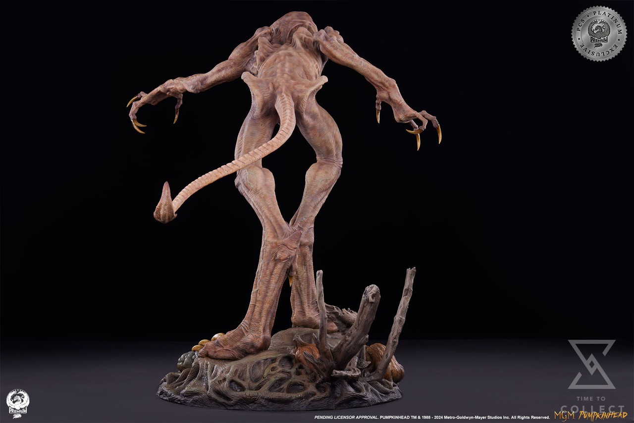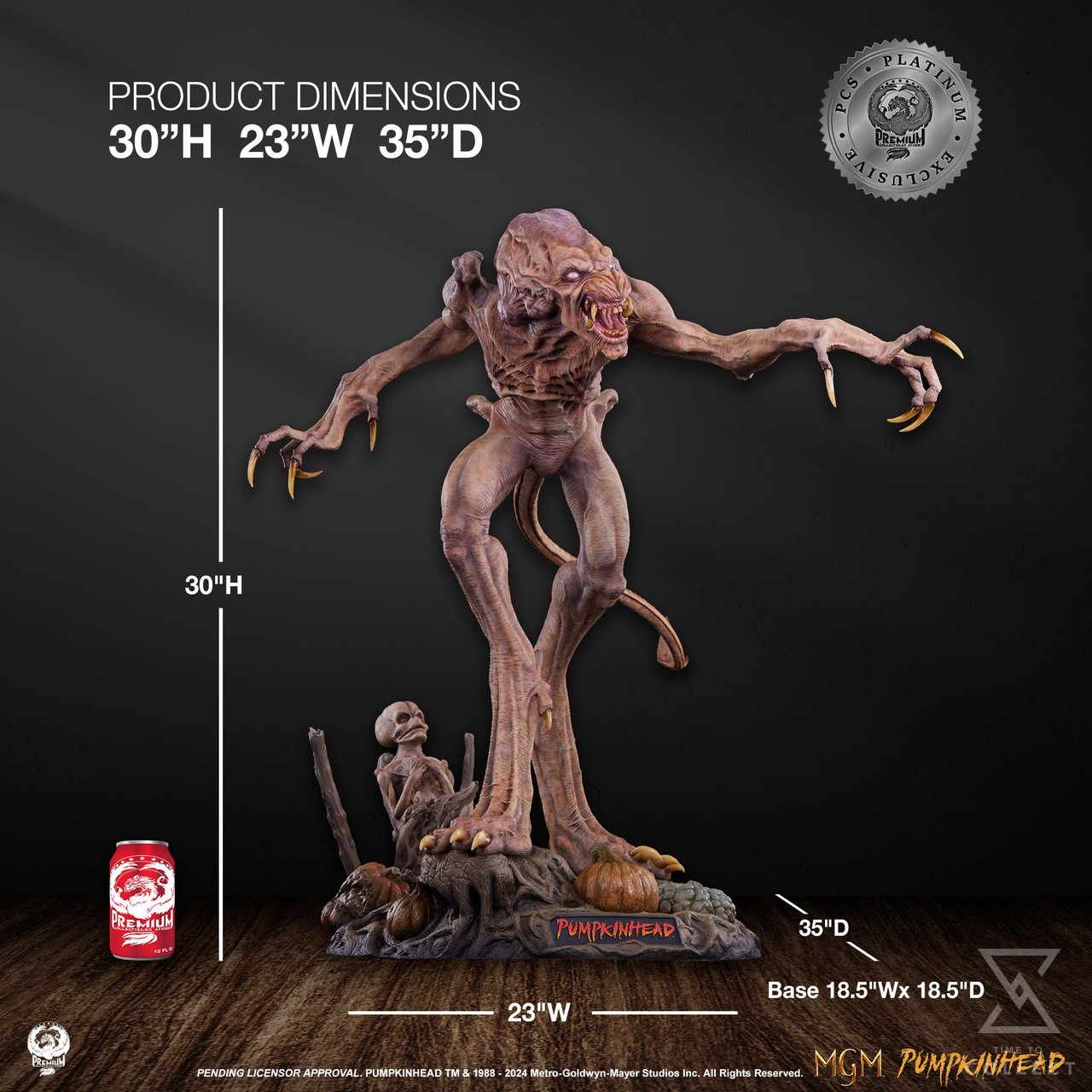 The Pumpkinhead 1:3 Statue stands at a monstrous 30” tall atop a beautifully detailed environment base. Pumpkins in various stages of decay and realistically detailed roots and vines litter the ground beneath the creature’s feet. A placard with the iconic film logo decorates the front of the base and is seamlessly integrated into the frightening design.